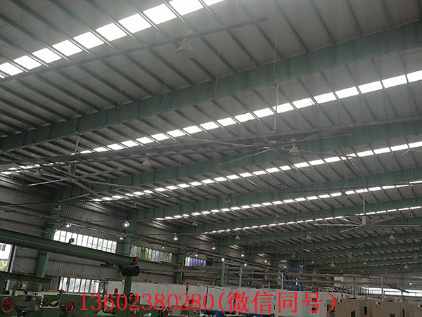 福泰工業吊扇不僅安裝效果好,而且價格實惠。一臺工業吊扇的扇葉直徑7.2米,使用面積高達1500平方米,使用起來十分省電。每小時用電量僅為1.3度。工業吊扇采用的是無伺服電機,是結合中國高鐵技術,在使用過程中達到噪音低、噪音分貝接近人睡眠分貝,電機無油污免維護,是很多企業都在使用的一款工業大吊扇,工業吊扇的扇葉攪動,會形成1-3級立體自然風,形成的微風可以加速人體汗液的蒸發,讓人感到涼爽舒適,實現無需安裝空調系統的小投資和舒適的通風降溫效果。