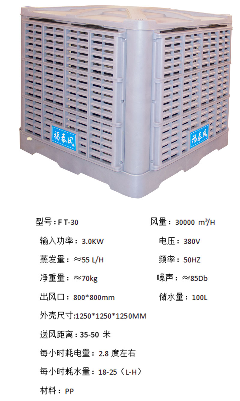 福泰環(huán)保空調(diào)性能穩(wěn)定在越炎熱的天氣下降溫的效果越好。適用于開敞式及半開敞式環(huán)境,能夠直接輸送自然風及輸送降溫后的涼風。室外新鮮空氣經(jīng)福泰蒸發(fā)式冷氣機過濾、降溫后向室內(nèi)源源不斷的大量輸送,將室內(nèi)帶有異味、粉塵和混濁悶熱的空氣排出室外,同時兼顧換氣降溫及增加空氣含氧量等多種效果。