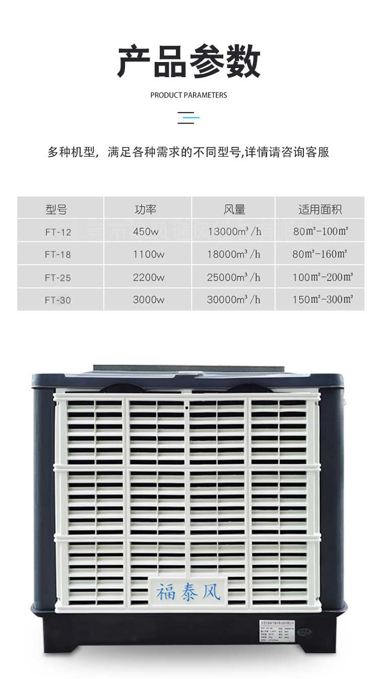 福泰環保空調性能穩定在越炎熱的天氣下降溫的效果越好。適用于開敞式及半開敞式環境,能夠直接輸送自然風及輸送降溫后的涼風。室外新鮮空氣經福泰蒸發式冷氣機過濾、降溫后向室內源源不斷的大量輸送,將室內帶有異味、粉塵和混濁悶熱的空氣排出室外,同時兼顧換氣降溫及增加空氣含氧量等多種效果。